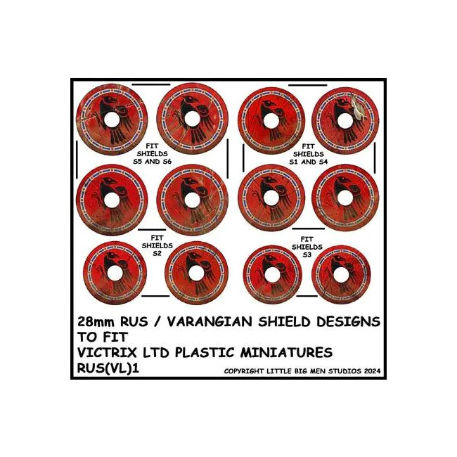 12 x transfers per sheet. This design with the black Raven is for RUS and Varangians. You can use this to depict the famous Varangian Guard who fought so magnificently for the Byzantine emperors. All transfers come uncut. Hole punch size for circular holes - 3mm