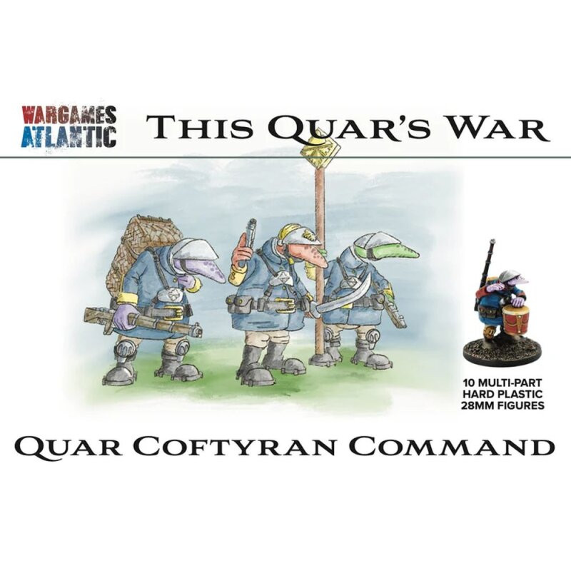 This hard-plastic box set includes enough parts to build a full Fidwog Command team, including officers, standard bearers, a signal Quar, and two pairs of two mounted rhyflers on Cadiers, along with two pack Cadiers. 12 dual-use 25mm bases and 6 25mm x 50mm pill bases are included.